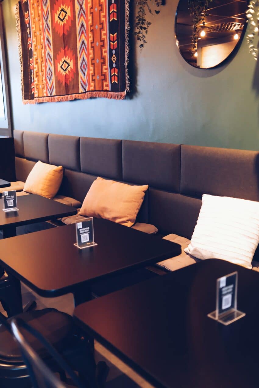 Lokalen rymmer runt 25 sittplatser, men mycket av maten beställs för avhämtning via restaurangens webbplats eller genom leveranstjänster.