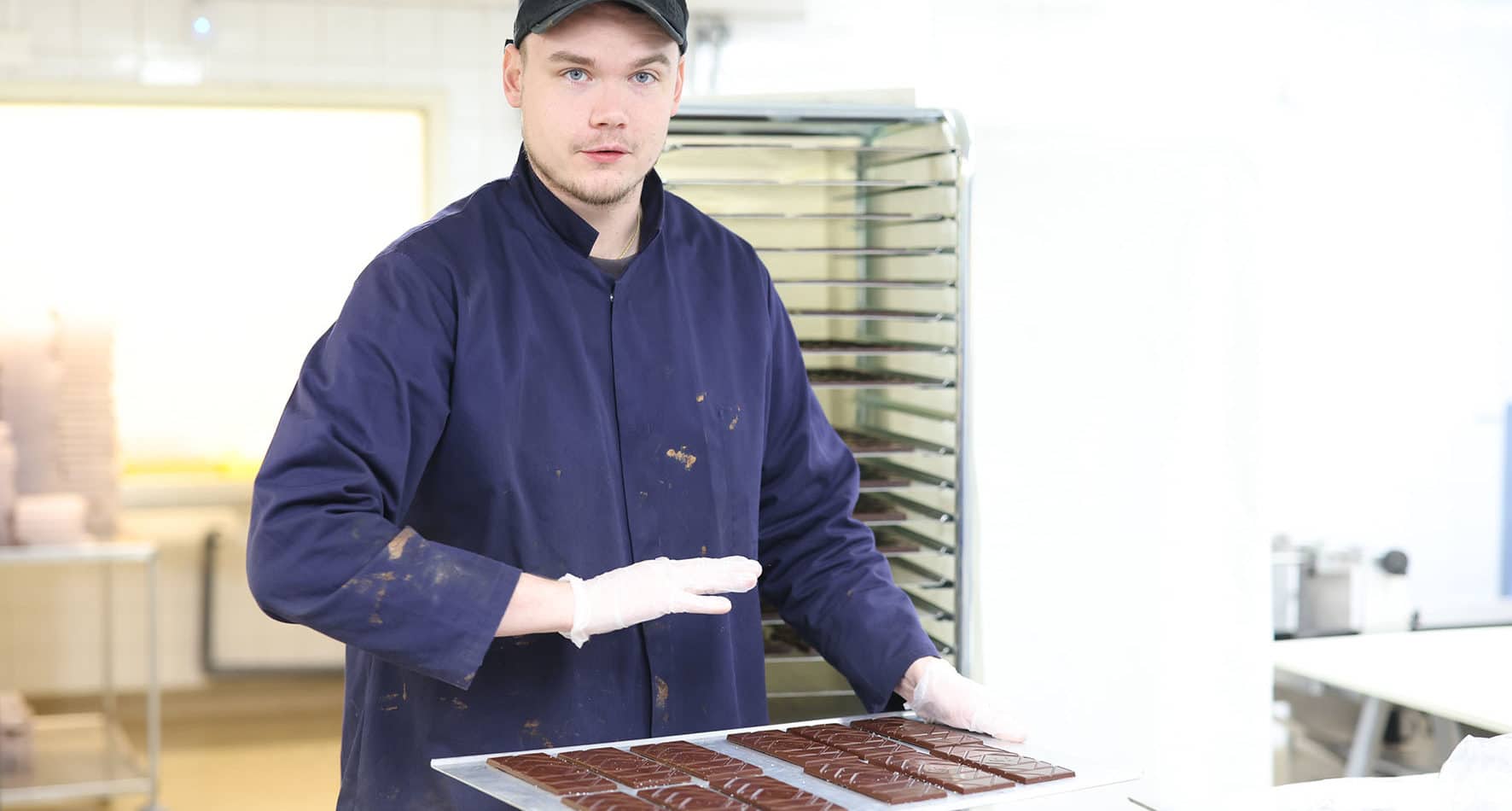 – Förutom på innehållsförteckningen på chokladen så hoppas jag att vi når ut med vår story till konsumenterna på sociala medier, säger Sebastian.